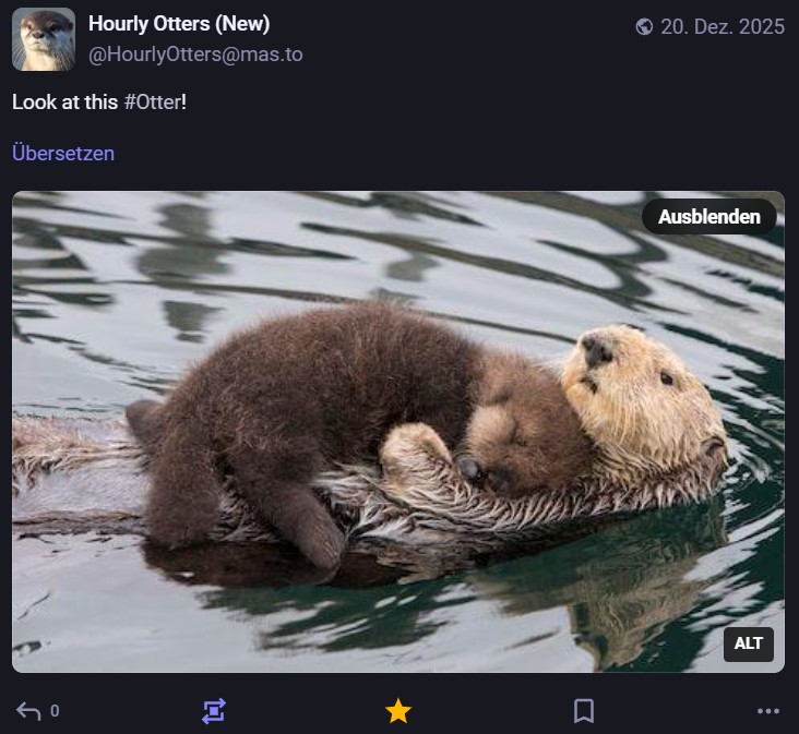 Mein Leben ist zweifelsohne ein besseres, seitdem ich den Hourly Otters auf Mastodon folge.